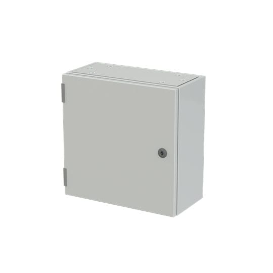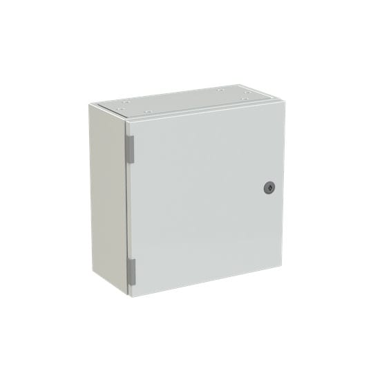 Cassa con porta cieca e piastra di fondo serie SR2, struttura in lamiera d'acciaio spessore 12/10, piastra di fondo in lamiera zincata spessore 20/10. Utilizzata per la realizzazione di quadri di comando e controllo delle più varie macchine industriali: da grossi macchinari a linee automatizzate di produzione o parti di esse, alle tipiche installazioni di quadri bordo macchina, a caldaie, impianti di riscaldamento ed altro ancora. Consente anche la realizzazione di quadri di distribuzione secondaria grazie alla possibilità di installare tutta la gamma di apparecchi e interruttori modulari su guide DIN abbinate ad appositi pannelli frontali modulari preforati e incernierati.