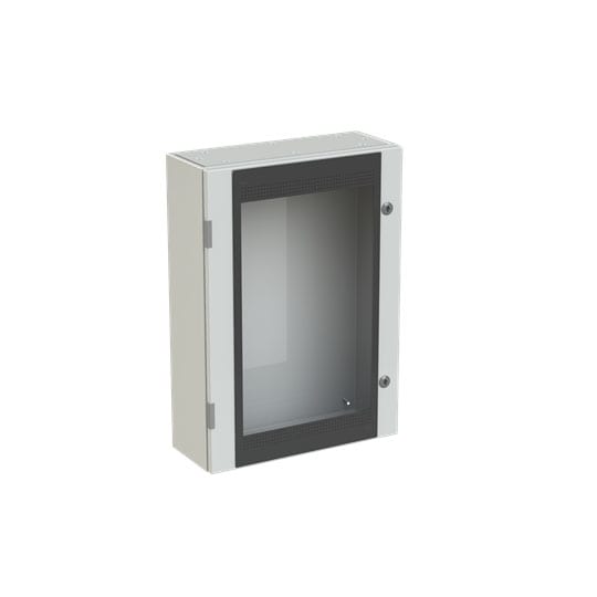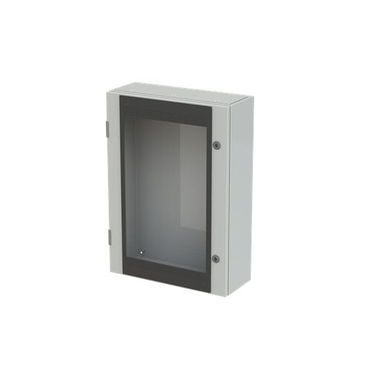 Cassa con porta in vetro senza piastra di fondo serie SR2, struttura in lamiera d'acciaio spessore 12/10. Utilizzata per la realizzazione di quadri di comando e controllo delle più varie macchine industriali: da grossi macchinari a linee automatizzate diproduzione o parti di esse, alle tipiche installazioni di quadri bordo macchina, a caldaie, impianti di riscaldamento ed altro ancora. Consente anche la realizzazione di quadri di distribuzione secondaria grazie alla possibilità di installare tutta la gamma di apparecchi e interruttori modulari su guide DIN abbinate ad appositi pannelli frontali modulari preforati e incernierati.