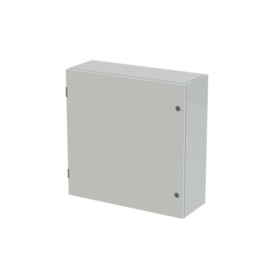 Cassa con porta cieca e piastra di fondo serie SR2, struttura in lamiera d'acciaio spessore 12/10, piastra di fondo in lamiera zincata spessore 20/10. Utilizzata per la realizzazione di quadri di comando e controllo delle più varie macchine industriali: da grossi macchinari a linee automatizzate di produzione o parti di esse, alle tipiche installazioni di quadri bordo macchina, a caldaie, impianti di riscaldamento ed altro ancora. Consente anche la realizzazione di quadri di distribuzione secondaria grazie alla possibilità di installare tutta la gamma di apparecchi e interruttori modulari su guide DIN abbinate ad appositi pannelli frontali modulari preforati e incernierati.