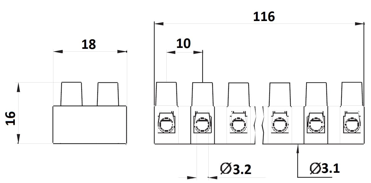 morsettiere multipolare in poliamide