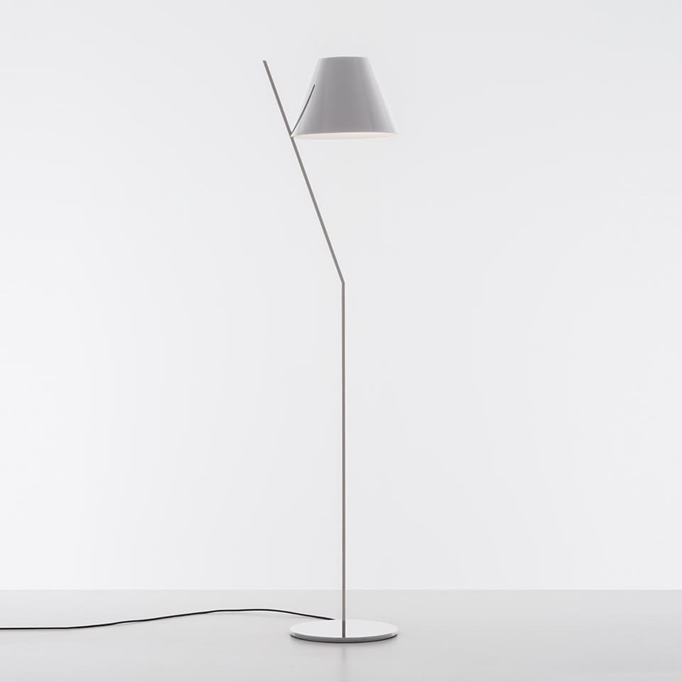 La Petite Floor è caratterizzata da un archetipo paralume in equilibrio su uno stelo inclinato. I principi compositivi restano invariati. Semplici elementi combinati con eleganza per stupire nella loro composizione geometrica corrispondono a forme elementari combinate a materiali diversi per ragioni tecnologiche. Anche in una lampada così apparentemente semplice ed essenziale si esprime il saper fare di Artemide: la cura di ogni dettaglio dell’oggetto si combina all'attenzione alla qualità della luce. Ilparalume è un leggero volume plastico chiuso da due diffusori che producono una piacevole morbida luce diretta e indiretta Il giunto sostiene il paralume su un punto di appoggio minimo collegandolo allo stelo in alluminio. Questi semplici elementi definiscono un insieme semplice ed elegante dove l'inclinazione dello stelo è bilanciata dal volume del paralume. La Petite è realizzata in tre versioni colore decise, che ne esaltano l'aspetto essenziale ed iconico: interamente nero o bianco e paralume rosso con base e stelo bianco."Petite cammina su un filo, in bilico tra pieni e vuoti Nel suo disegno non c’é simmetria, ma cé ordine. Una sottile armonia di elementi scomposti, in equilibrio al limite tra luce e buio. La famiglia La Petite si ingrandisce : diventa grande, in bilico sul lungo stelo o perde il filo, camminando in equilibrio sui muri. Colore: Bianco. LED 12W E27 676lm 3000K CRI 80.