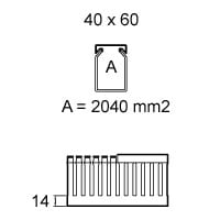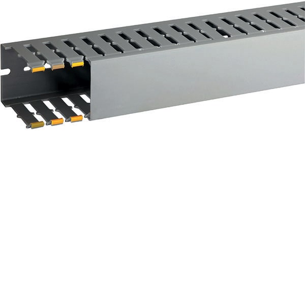 Canalette in PVC autoestinguente per il cablaggio di quadri elettrici, progettate per un’organizzazione efficiente e sicura dei cavi. Dotate di coestruso morbido giallo sulle lamelle, misurano b40 x h60 mm con modulo 10 mm (feritoria 4 mm, lamella 6 mm).Conformi alla norma UL94 V0 e resistenti al filo incandescente fino a 960 °C (GWT EN 60695-2-11). Colore grigio RAL 7030, lunghezza 2 m, complete di coperchio.