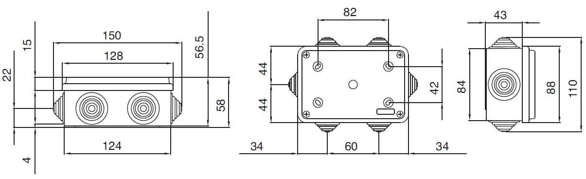 Cassetta di derivazione stagna Pico, misura 02, con coperchio standard e 6 passatubi laterali per tubi rigidi da 16, 20 e 25 mm, ideale per proteggere e organizzare le connessioni elettriche indoor e outdoor. Realizzata in ABS autoestinguente di colore grigio (RAL 7035), è resistente ai raggi UV e agli urti IK07 (EN 62262). Il sistema di chiusura con viti metalliche assicura sicurezza e una protezione IP55. Dimensioni di 120x80x50 mm (LxHxP).