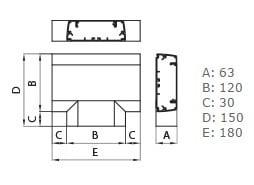 Derivazione a T per canali porta apparecchi e porta cavi in alluminio della linea ALUB di dimensioni b120 x h60 mm. Realizzato in alluminio verniciato bianco Everest RAL 9010, non propaga la fiamma. Soluzione ideale per installazioni a battiscopa e parete, i coperchi, smontabili con attrezzo, garantiscono un’installazione sicura e ordinata.