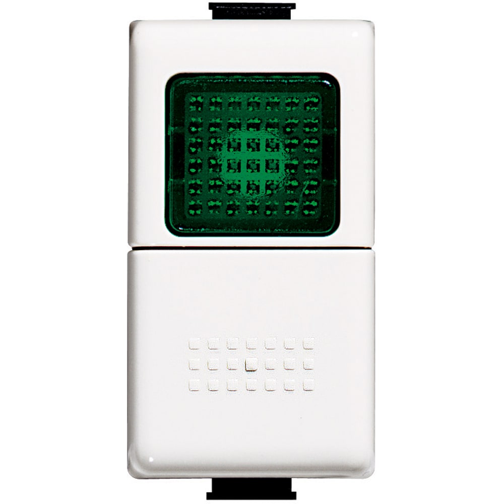 pulsante 1P NO 250V ac 10A colore abiancovorio e portalampada di segnalazione 24V 1,5W - diffusore verde