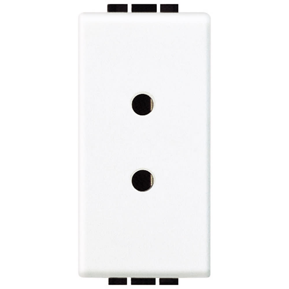 Presa per contatto diagnostico. Consente di interfacciare al sistema di chiamata un dispositivo diagnostico automatico. Quando il dispositivo diagnostico rileva un\'anomalia, attraverso questa presa, collegata al terminale di camera, una specifica segnalazione avverte il personale di presidio mediante una specifica segnalazione sul sistema di chiamata infermiera. Con 2 alveoli di diametro 3 mm e interasse 13 mm. Dispositivo 1 modulo - serie civile.