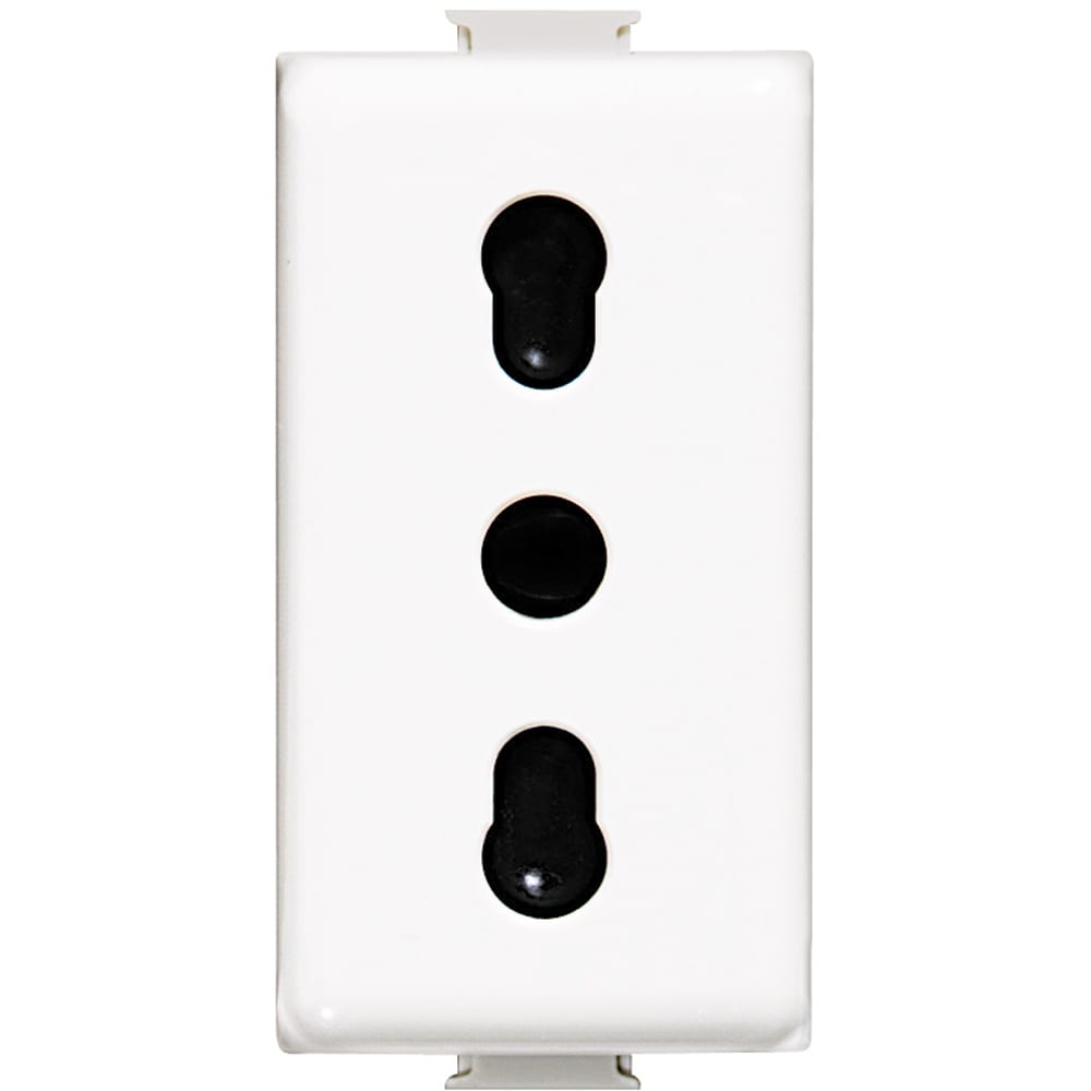 presa 2P+T 16 A 250 Va.c.- interasse 19 mm e 26 mm alveoli schermati - per spine 2P e 2P+T 10 A e 16 A standard ITALIA - antibatterico - colore bianco