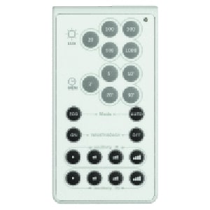 Telecomando di configurazione base, dotato di trasmettitore ad infrarossi, permette la regolazione dei principali parametri di funzionamento di: Switch Sensor, Green Switch e dei sensori SCS compatibili. Permette la modifica dei parametri solo per valoripre impostati, ricarica delle batterie non disponibile