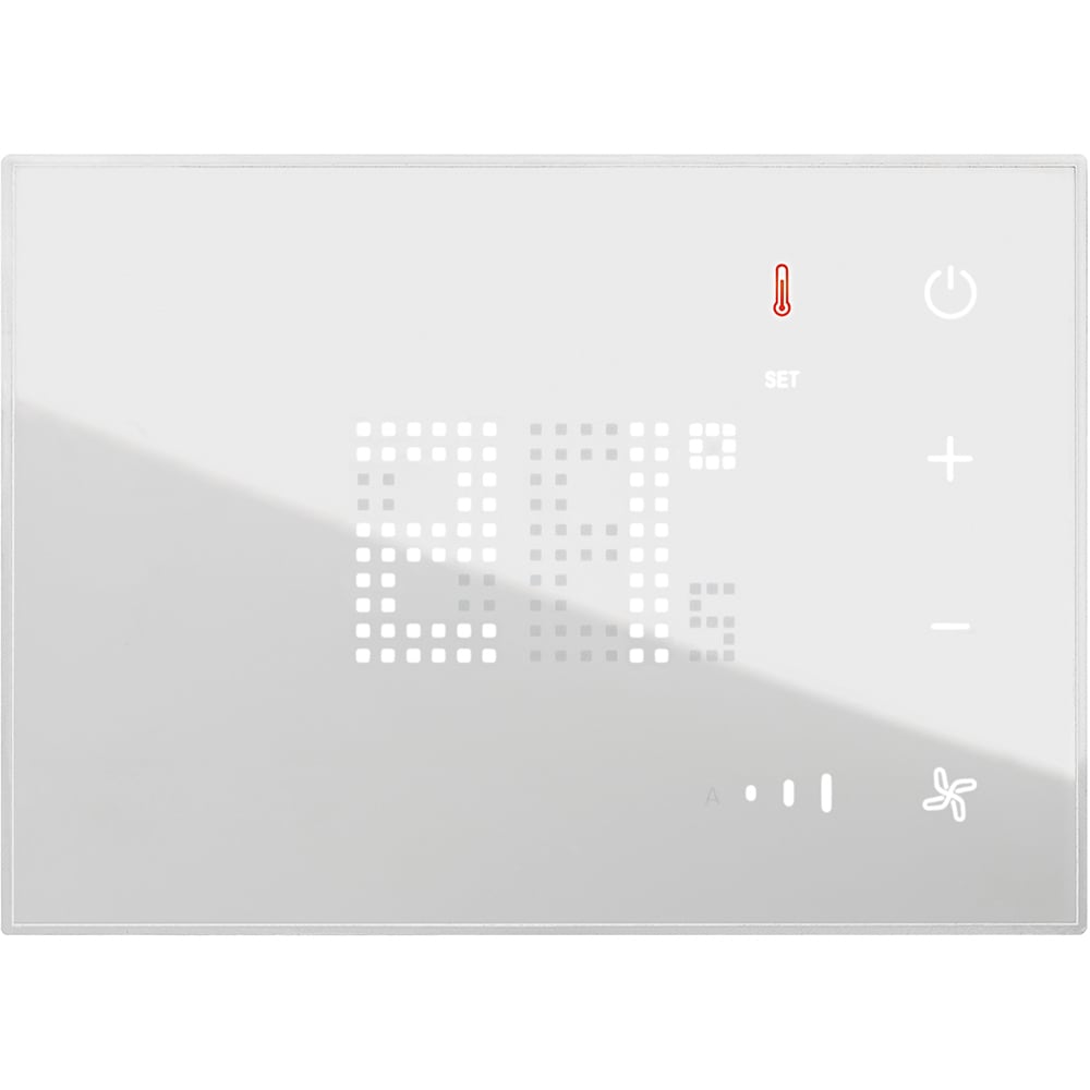 Sonda di temperatura con display Touch retroilluminato con finitura placca colore BIANCA in materiale plastico. Permette il controllo della temperatura di una singola zona.É dotato di una sonda di temperatura e di un ingresso per il collegamento di una linea contatti (es. contatto finestra).Permette la gestione di diverse tipologie di impianto e la regolazione della velocità della ventola in caso di impiego di Fan-Coils.Possibilità di funzionamento automatico (estate/inverno) con impianti compatibili.Collegamento a SCS-BUS - Dimensioni: 3 moduli.