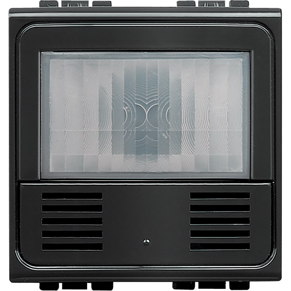 LivingLight antracite. Green Switch KNX ad infrarossi passivi (PIR), grado di protezione IP20.Dotato di pulsante a bordo, ideale per l\'installazione in aree di passaggio (es. corridoio, atrii, servizi igienici...).Connessione al bus tramite connettore KNX rosso-nero. Tensione di alimentazione SELV 29 Vd.c. da bus KNX.Installazione in serie civile, da completare con supporto e placca serie civile Livinglight.Dimensioni 2 moduli.