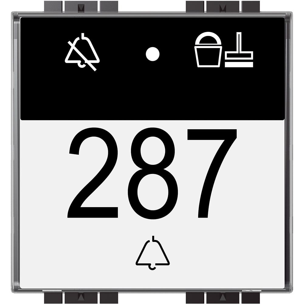 Serie Livinglight - indicatore NON DISTURBARE - RIORDINARECAMERA e Pulsante suoneria - collegamento a SCS-BUS - dimensioni: 2 moduli
