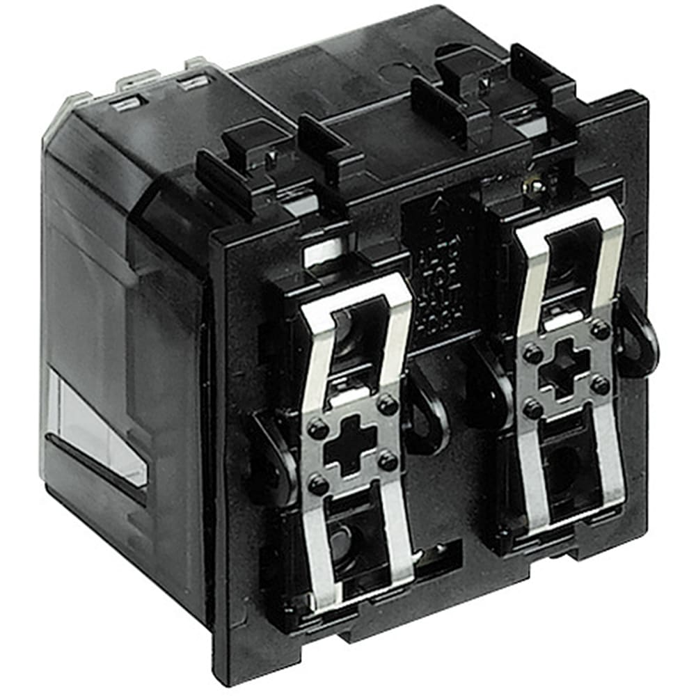 Attuatore ad incasso Livinglight con 2 relè interni 2A 250Vac e dotato di 4 pulsanti e 3 led bicolore realizzato per funzionare in abbinamento ai dispositivi di comando evoluti LN4660M2 specifici per la gestione delle tapparelle - 2 moduli.
