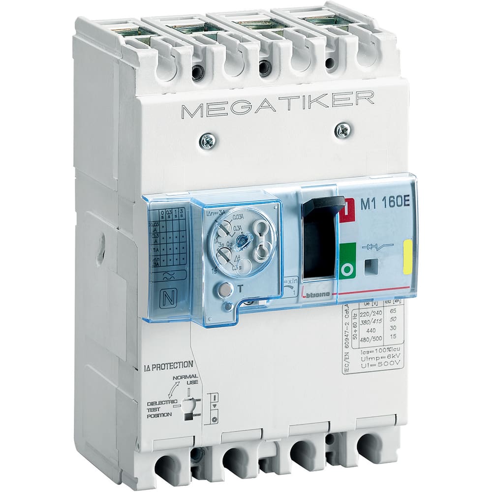 M1 160E - interruttore scatolato MEGATIKER magnetotermico con protezione differenziale integrata 3P+N/2 - Icu= 16kA - In= 160A