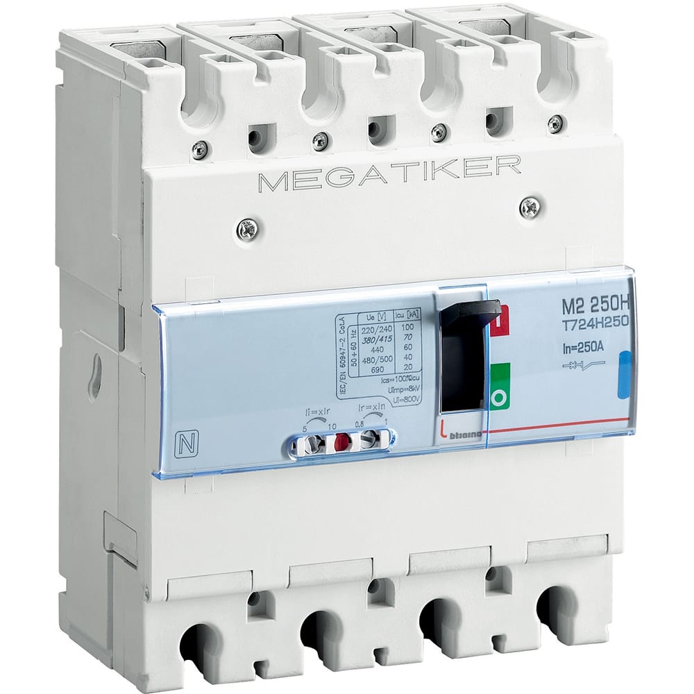 M2 250H - interruttore scatolato MEGATIKER magnetotermico 3P+N/2 - Icu= 70kA - In= 250A