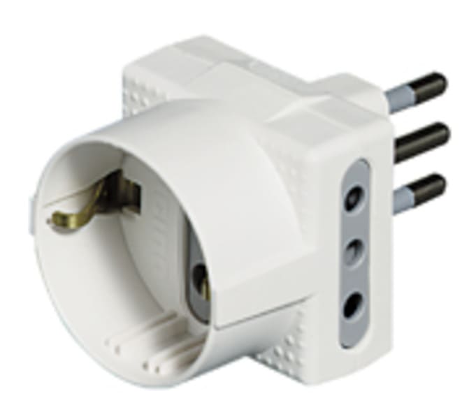 Adattatore TRIS con 1 presa tedesca 2 prese 10A di colore bianco