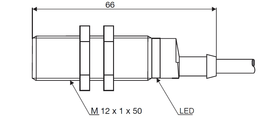 Sensore di Prossimità Induttivo M12 Cilindrico filettatato lungo. Connessione Cavo. FUNZIONE DI USCITA: normalmente aperto. Peso: 80 g. Temperatura di funzionamento: da -25° a +70°C. Grado di protezione IP 67.