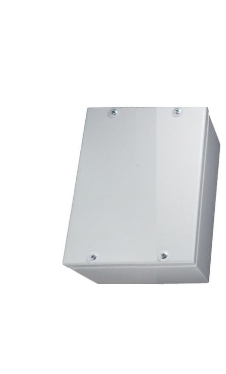 Cassetta di derivazione composta da corpo, supporti per guida DIN e coperchio, dimensioni: 100x100x80. Corpo in acciaio inox AISI304 satinato scotch brite sp.12/10 pressopiegato e saldato. Porta in acciaio inox AISI 304 satinato scotch brite sp. 12/10. Piastra interna in lamiera sp. 15-20/10 sendzimir. Guarnizioni, poliuretaniche applicate in colata continua. Cerniere reversibili con apertura 110°. Serratura con impronta doppia aletta. Grado di protezione IP 65 - TYPE 4X.