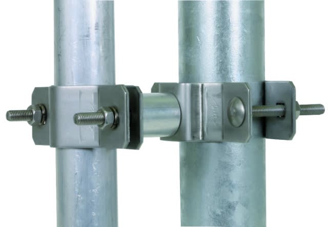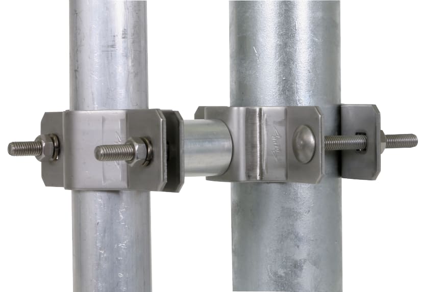 Collari per il fissaggio dei tubi portanti p.es. al palo d'antenna con distanziatore di lunghezza 30 mm, da poter compensare elementi di fissaggio delle antenne.