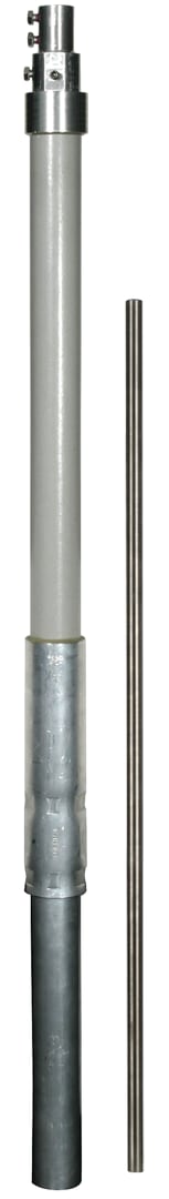 Tubo portante in PRFV/Al con terminale interno ed elemento a molla per l'equipotenzialità per la conduttura HVI long, per il montaggio separato (isolato) di captatori con punta di captazione. Per il rispetto della distanza di sicurezza da componenti metallici secondo CEI EN 62305-3 (CEI 81-10/3). Tubo D50 mm in vetroresina (PRFV), stabilizzato ai raggi UV, colore grigio chiaro, coefficiente di materiale km = 0,7. Esecuzione a corpo unico, combinato con la punta di captazione (D10 mm, lunghezza 1000 mm) in acciaio INOX.
