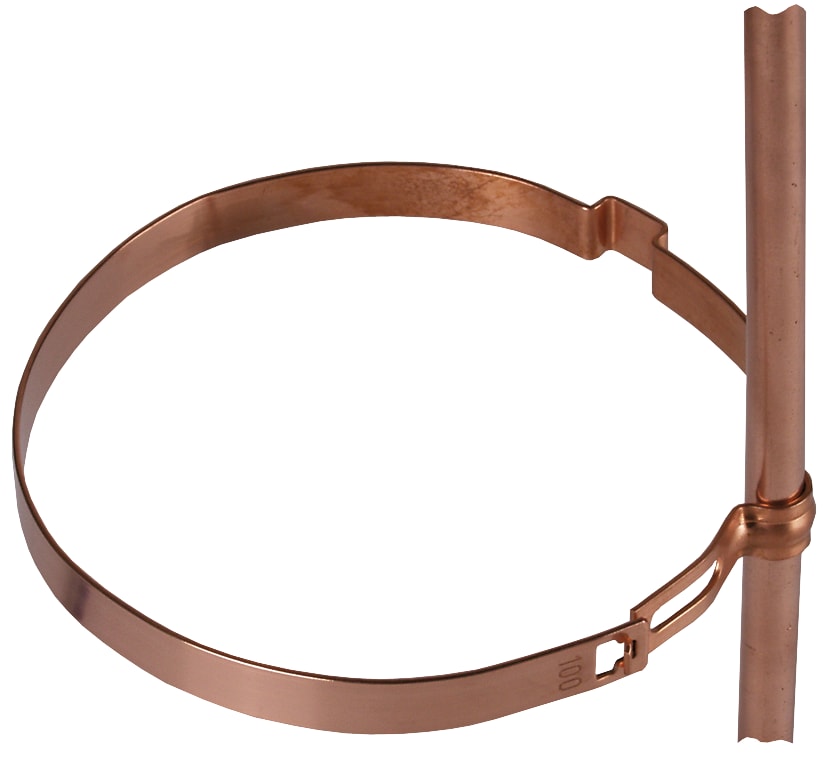 Staffa portafilo per la posa di calate su pluviali. Esecuzione tipo PS senza vite, con stampigliature per pinza, posa del conduttore fissa.