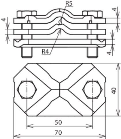 Morsetto di collegamento/sezionamento secondo CEI EN 62561-1 per il collegamento della calata con l'adduzione a terra. Esecuzione a tre componenti per conduttori tondi e piatti (larghezza fino a 40 mm).