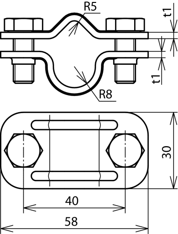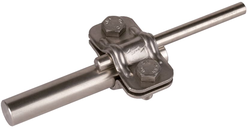 Morsetto di sezionamento UNI secondo CEI EN 62561-1 per il collegamento della calata con l’adduzione a terra. Esecuzione senza piastra intermedia per aste di adduzione a terra Td 16 mm.