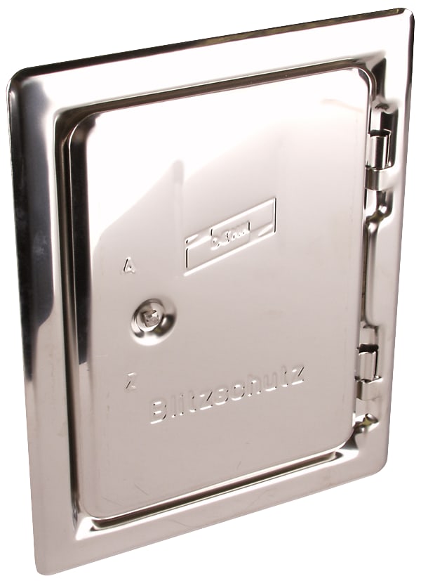 Sportelli di revisione per punti di sezionamenti sotto intonaco. Esecuzione INOX con chiave quadrata.