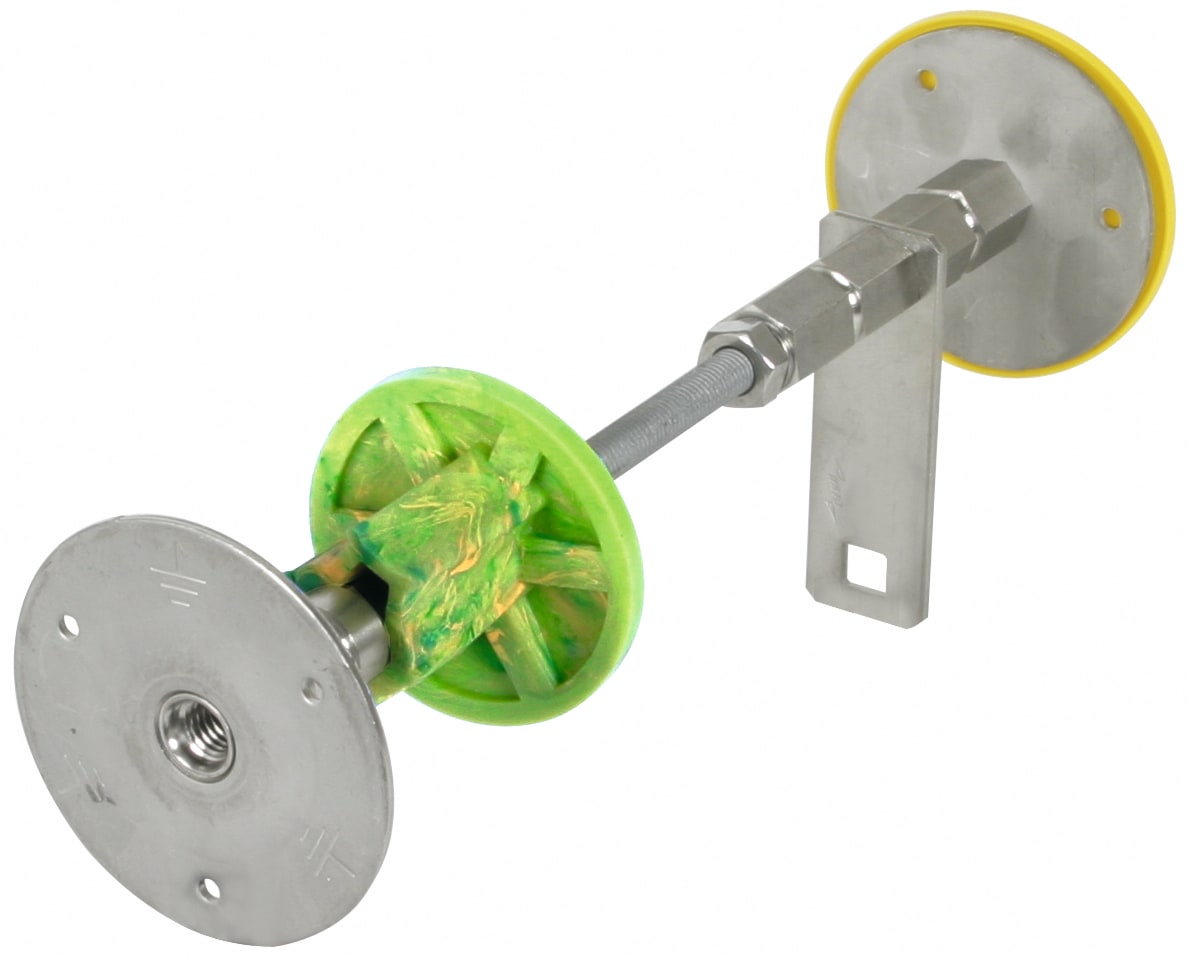 Passante stagno per pareti per "vasca bianca", per passaggio con acqua pressurizzata dei cavi di messa a terra e di equipotenzilità attraverso pareti in calcestruzzo, modificabile con asta filettata M10. Esecuzione per il montaggio nella cassaforma con barriera stagna e filetto doppio M10/12. Provato con aria compressa 5 bar secondo CEI EN 62561-5 e prova con acqua pressurizzata fino a 1 bar (fino a una profondità di 10 m). Compreso elemento di connessione (Fe/tZn, dimensioni 30 x 4 mm) con foro quadratoper il collegamento con cavallotto di fissaggio per conduttori tondi oppure morsetto a croce per conduttori piatti.