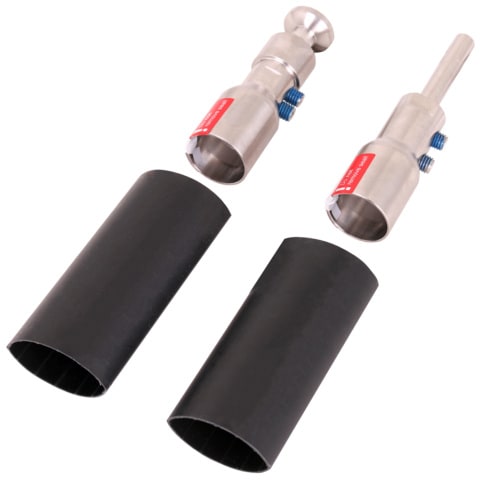 Elementi di connessione per la terminazione della conduttura HVI power long su entrambe le estremità, nella realizzazione del terminale della conduttura nel tubo portante (elemento terminale) ed elemento di connessione per collegare altri componenti della protezione da fulmini esterna o dell'impianto di messa a terra (due tubi termorestringenti compresi nella confezione).