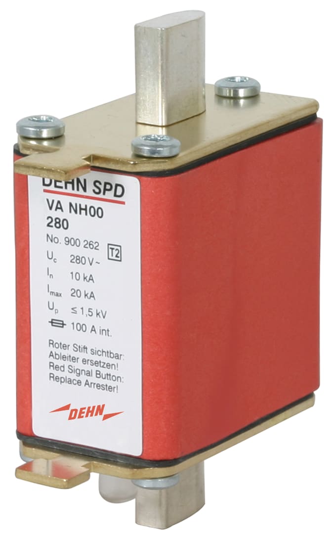 Limitatore di sovratensione, unipolare, VA NH, Tipo 2 secondo CEI EN 61643-11 con circuito in serie di varistore e spinterometro in forma costruttiva NH con fusibile di portezione integrato. Per la protezione di utenze BT da sovratensioni. Per l'utilizzonel concetto di protezione a zone nell'interfaccia 0B – 1 e superiore.