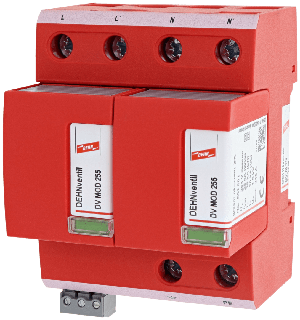 Scaricatore combinato multipolare DEHNventil modular, SPD Tipo 1 + Tipo 2 secondo EN 61643-11 (CEI EN 61643-11, CEI 37-8) su base spinterometrica, composto da elemento base e moduli di protezione innestabili. Elevatissima continuità di servizio per la limitazione di corrente susseguente RADAX-Flow. Permette la protezion di utenze finali. Per la protezione da sovratensioni di impianti elettrici utilizzatori in bassa tensione, anche in caso di fulminazione diretta. Per l'impiego nel concetto di protezioneda fulminazione a zone, ai passaggi 0A - 2.