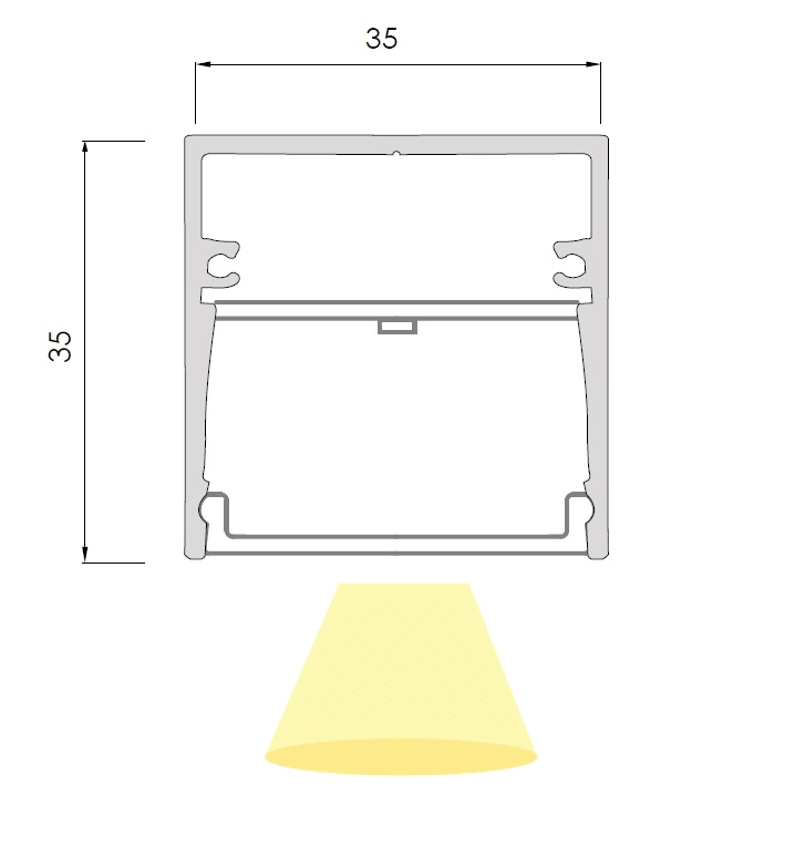 Zer035 costruito in estruso di alluminio si avvale della tecnologia degli schermi in policarbonato per diffondere la luce per mezzo di LED al top, per qualità, resa cromatica, lumen emessi, ed accurata selezione della Temperatura colore, scelta in base al progetto scenografico che vogliamo ottenere. ZERO 35 offre una gamma di finiture e di accessori, i tagli lineari e a 45 o su MISURA, rendono realizzabile qualsiasi progetto sia esso da incasso a parete, plafone o sospensione. Materiale: alluminio e policarbonato. Cover: opale/satinata. LED e alimentatori non inclusi. Finitura: Bianco. Lunghezza: 1cm.