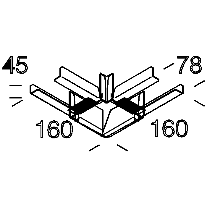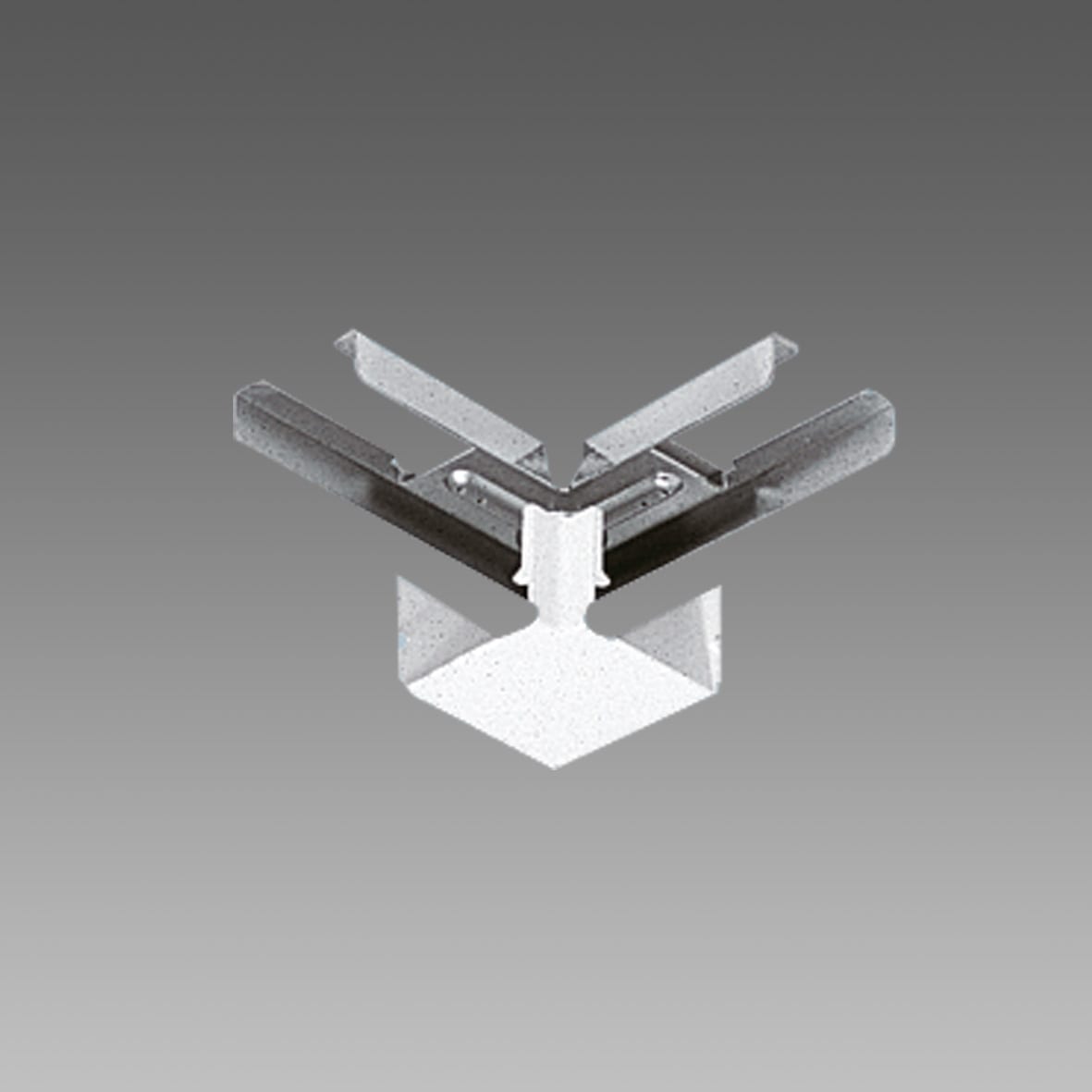 Giunto angolare in acciaio zincato con copertura in materiale termoplastico bianco. Per la giunzione a "L"di 2 canali art. 6000.