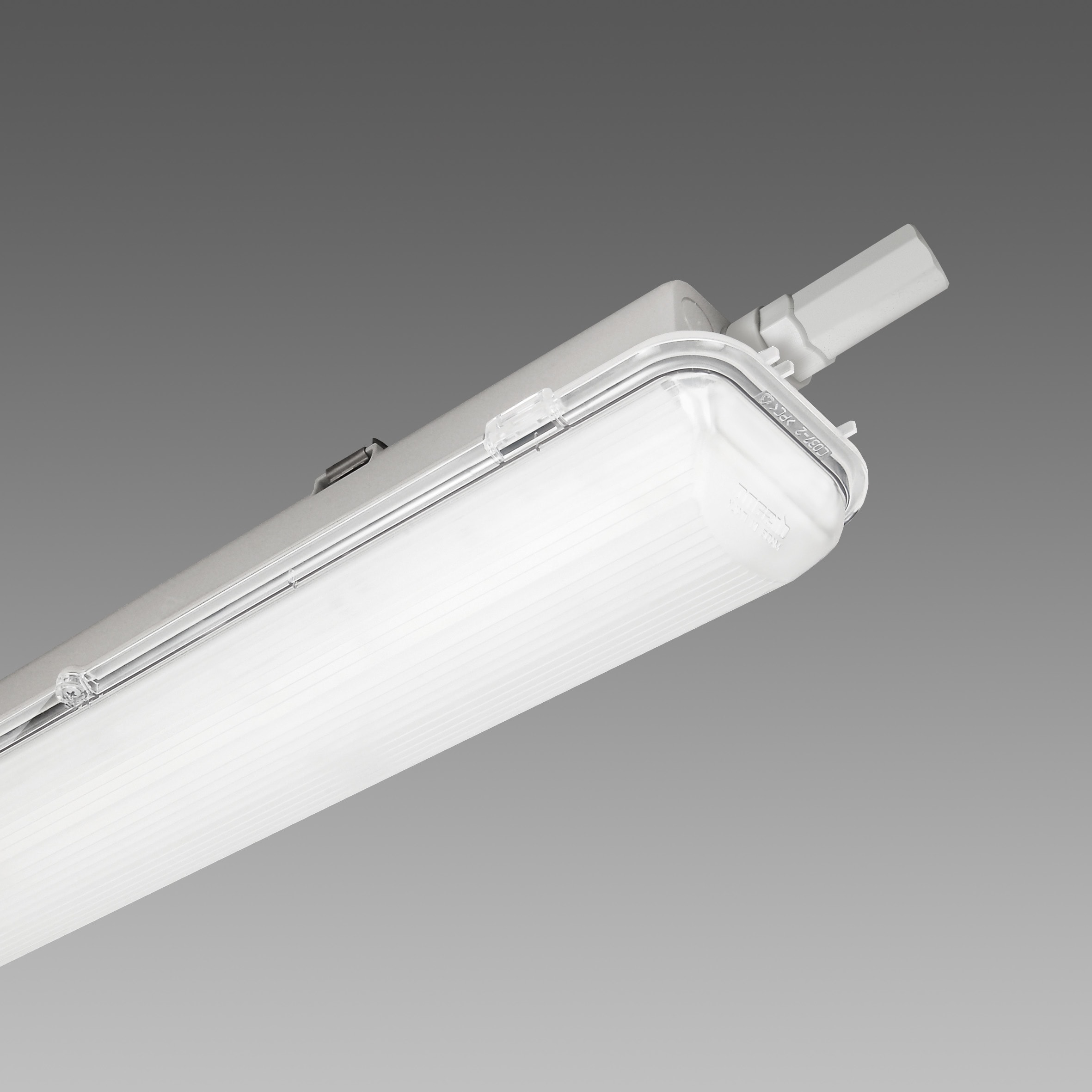 960 Hydro LED - Money Saving - RADAR SENSOR. CORPO: Stampato ad iniezione, in policarbonato grigio, infrangibile ed autoestinguente, stabilizzato ai raggi UV, di elevata resistenza meccanica grazie alla struttura rinforzata da nervature interne. Diffusore: stampato ad iniezione in policarbonato con righe interne per un maggior controllo luminoso, autoestinguente V2, stabilizzato ai raggi UV, finitura esterna liscia per facilitare la pulizia necessaria per avere la massima efficienza luminosa. Chiusura a incastro e con viti di sicurezza in acciaio inox. Riflettore: in acciaio zincato preverniciato bianco a forno con resina poliestere stabilizzato ai raggi UV. Fissato al corpo con innesto rapido mediante dispositivo ricavato direttamente sul corpo. radar sensor per armature ON-OFF: sottocodice -19. Dotazione: guarnizione di tenuta iniettata in materiale ecologico di poliuretano espanso antinvecchiamento. Staffe di fissaggio a plafone e a sospensione in Acciaio Inox. Connettore presa-spina. L’ancoraggio dell’apparecchiatura sulle staffe di fissaggio avviene in sicurezza mediante innesto rapido. Normative: in conformità alla norma EN60598-1, EN60598-2-1. Grado di protezione: secondo la norma EN60598-1. Fattore di potenza: >= 0,95. Mantenimento flusso luminoso: L70B20 50.000h. Classificazione rischio fotobiologico: Gruppo esente. Low Flicker Risk Temperatura ambiente: -30°C a + 40°C. LED 50W 6786lm 4000K CRI>80.