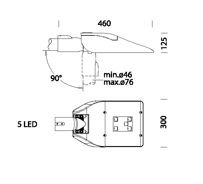 Corpo e telaio: In alluminio pressofuso e disegnati con una sezione e bassissima superficie di esposizione al vento. Alette di raffreddamento integrate nella copertura. Ottiche: Sistema a ottiche combinate realizzate in PMMA ad alto rendimenti resistentealle alte temperature e ai raggi UV. Recuperatori di flusso in policarbonato V2. Attacco palo: In alluminio pressofuso è provvisto di ganasce per il bloccaggio dell’armatura secondo diverse inclinazioni. Orientabile da 0° a 20° per applicazione a frusta; e da 0° a 15° per applicazione a testa palo. Passo di inclinazione 5° Idoneo per pali di diametro 46-76mm. Diffusore: vetro trasparente sp. 4mm temperato resistente agli shock termici e agli urti (UNI-EN 12150-1 : 2001). Verniciatura: A polvere con resinaa base poliestre, resistente alla corrosione e alle nebbie saline. Dotazione: Dispositivo automatico di controllo della temperatura all’interno dell’apparecchio con rispristino automatico. Protezione contro gli impulsi conforme alla EN 61547. Con dispositivo elettronico dedicato alla protezione del modulo LED. Equipaggiamento: Completo di connettore stagno IP67 per il collegamento alla linea. Dissipatore: Il sistema di dissipazione del calore è appositamente studiato e realizzato per permettere il funzionamento dei LED con temperature inferiori ai 50° (Tj = 25°) garantendo ottime prestazioni/ rendimento ed un’ elevata durata di vita. NORMATIVA: Prodotti in conformità alle norme EN60598 - CEI 34 - 21. Hanno grado di protezione secondo le norme EN60529. Tecnologia LED di ultima generazione Ta -30 + 40°C vita utile 50.000h al 80% L80B20. Classificazione rischio fotobiologico: Gruppo di rischio esente. Lampada: LED white 19W 2970Lm 4000K CRI80.