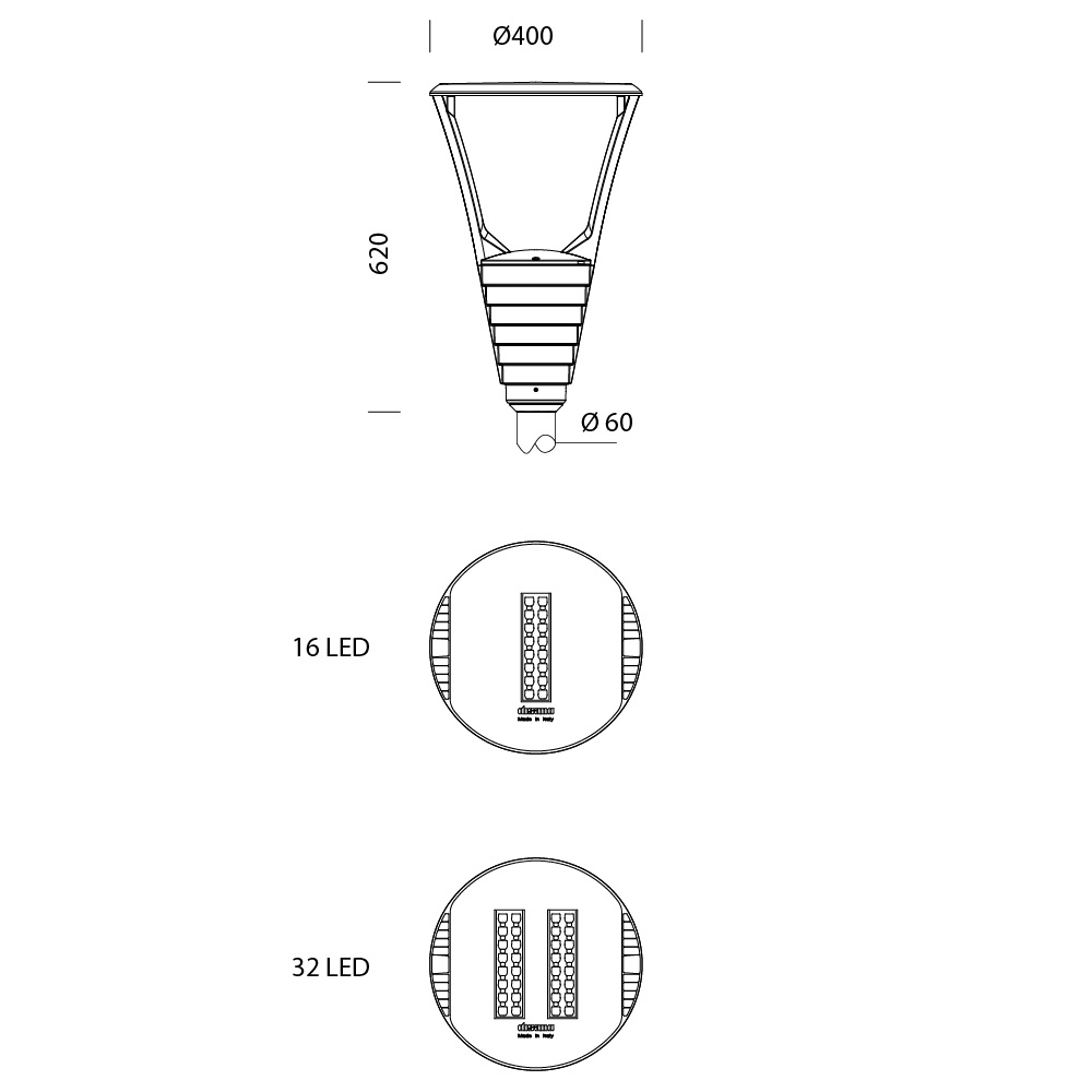 3351 Garda 2 - Asimmetrico - Corpo e bracci : in alluminio pressofuso, disegnati con una sezione a bassissima superficie di esposizione al vento. Ottiche: ottiche realizzate in PMMA con alta resistenza alla temperatura e ai raggi UV. Attacco palo: in alluminio pressofuso. Idoneo per pali di diametro da 60 a 76mm. Diffusore: vetro trasparente sp. 4mm temperato resistente agli shock termici e agli urti (UNI-EN 12150-1 : 2001). Verniciatura: iil ciclo di verniciatura standard a liquido, ad immersione, è composto da diverse fasi. Una prima fase di pretrattamento superficiale del metallo, poi una verniciatura in cataforesi epossidica resistente alla corrosione e alle nebbie saline, poi una mano finale a liquido bicomponente acrilico, stabilizzato ai raggi UV. Dotazione: cablaggio posto su piastra di cablaggio in nylon 30% f.v. con connettori rapidi per il collegamento della linea e del LED. Dispositivo di controllo della temperatura all’interno dell’apparecchio con rispristino automatico. Con dispositivo elettronico dedicato alla protezione del modulo LED. Valvola anticondensa per il ricircolo dell’aria. Risparmio: la possibilità di scegliere la corrente di pilotaggio dei LED consente di disporre sempre della potenza adeguata ad una specifica condizione progettuale, semplificando anche l’approccio alle future problematiche di manutenzione ad aggiornamento. La scelta di una corrente più bassa aumenterà l’efficienza e quindi migliorerà il risparmio energetico, mentre con una corrente maggiore si otterrà più luce e sarà possibile ridurre il numero degli apparecchi. Normativa: prodotti in conformità alle norme EN60598 - CEI 34 - 21. Hanno grado di protezione secondo le norme EN60529. LED: fattore di potenza: >= 0,9. Mantenimento del flusso luminoso al 80%: 80.000h (L80B10). Superficie di esposizione al vento: 769 cmq. LED 34W 3178lm 700mA 3000K CRI 70. Antracite.