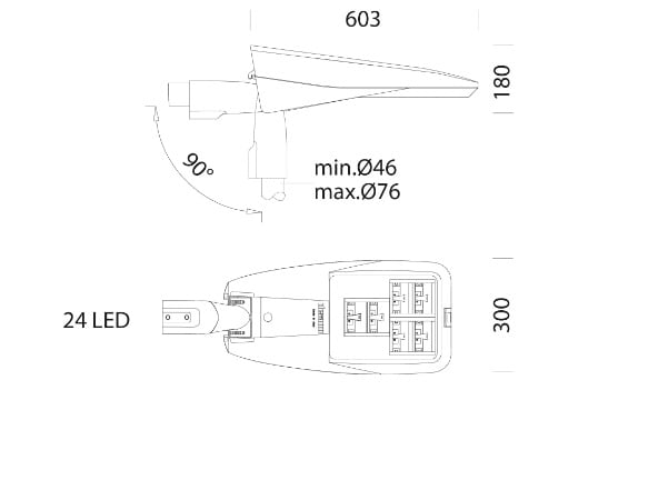 3291 Sella 1 - STWB. Corpo e coperchio: stampati in alluminio pressofuso e disegnati con una sezione aerodinamica a bassa superficie di esposizione al vento. Alette di raffreddamento integrate nella copertura. Ottiche: in alluminio rivestito con argentoad altissima purezza 99.99%, con procedimento sotto vuoto (PVD). Attacco palo: In alluminio pressofuso idoneo per pali di diametro da min. 46mm a max. 76mm orientabile da 0° a 20° per applicazione a frusta; e da 0° a 20° per applicazione a testa palo. Passo di inclinazione 5°. Diffusore: vetro extra-chiaro sp. 4mm temprato resistente agli shock termici e agli urti (UNI-EN12150-1: 2001).Verniciatura: a polvere con resina a base poliestere, resistente alla corrosione e alle nebbie saline e stabilizzata ai raggi UV. Si dichiara l’apparecchio di illuminazione SELLA resistente a 2000 ore di esposizione alla nebbia salina in accordo alla norma ASTM B 117 e a 2000 ore all’esposizione di UV CON in accordo alla norma ASTM G 154 . Dotazione: Connettore esternoper una rapida installazione. sezionatore in doppio isolamento che interrompe l’alimentazione elettrica all’apertura della copertura. Dispositivo di protezione conforme alla EN 61547 contro i fenomeni impulsivi atto a proteggere il modulo LED e il relativo alimentatore.Opera in due modalità: modo differenziale: surge tra i conduttori di alimentazione, ovvero tra il conduttore di fase verso quello di neutro. modo comune: surge tra i conduttori di alimentazione, L/N, verso la terra o il corpo dell’apparecchio se quest’ultimo è in classe II e se installato su palo metallico. LED: Fattore di potenza: =0,92. Colore: Argento sabbiato. LED 88W - 1240lm - CRI 70 - 700mA - 4000K -30°+40° - surge protector 6/8kV. Apparecchio a LED con reattore elettronico + Lampada.