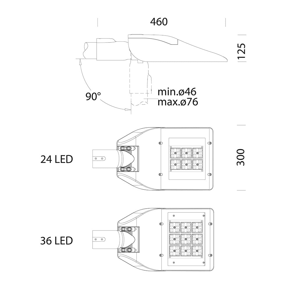 3286 Rolle - High Performance - Corpo e telaio: In alluminio pressofuso e disegnati con una sezione e bassissima superficie di esposizione al vento. Alette di raffreddamento integrate nella copertura. Ottiche: Sistema a ottiche combinate realizzate in PMMA ad alto rendimenti resistente alle alte temperature e ai raggi UV. Attacco palo: In alluminio pressofuso è provvisto di ganasce per il bloccaggio dell’armatura secondo diverse inclinazioni. Orientabile da 0° a 20° per applicazione a frusta; e da 0° a 15° per applicazione a testa palo. Passo di inclinazione 5° Idoneo per pali di diametro 46-76mm. Diffusore: vetro trasparente sp. 4mm temperato resistente agli shock termici e agli urti (UNI-EN 12150-1 : 2001). Verniciatura: il ciclo di verniciatura standard a polvere è composto da una fase di pretrattamento superficiale del metallo e successiva verniciatura a mano singola con polvere poliestere, resistente alla corrosione, alle nebbie saline e stabilizzata ai raggi UV. Dotazione: Dispositivo automatico dicontrollo della temperatura all’interno dell’apparecchio con rispristino automatico. Protezione contro gli impulsi conforme alla EN 61547. Con dispositivo elettronico dedicato alla protezione del modulo LED. Equipaggiamento: Completo di connettore stagnoIP67 per il collegamento alla linea. Dissipatore: Il sistema di dissipazione del calore è appositamente studiato e realizzato per permettere il funzionamento dei LED con temperature inferiori ai 50° (Tj = 25°) garantendo ottime prestazioni/ rendimento edun’ elevata durata di vita. NORMATIVA: Prodotti in conformità alle norme EN60598 - CEI 34 - 21. Hanno grado di protezione secondo le norme EN60529. Tecnologia LED di ultima generazione Ta -30 + 40°C vita utile 50.000h al 80% L80B20. Classificazione rischio fotobiologico: Gruppo di rischio esente. Fattore di potenza >0.9. Superficie di esposizione al vento: L:548cm² S:1431cm². LED 111W 12295lm 3000K CRI 70. Argento sabbiato.