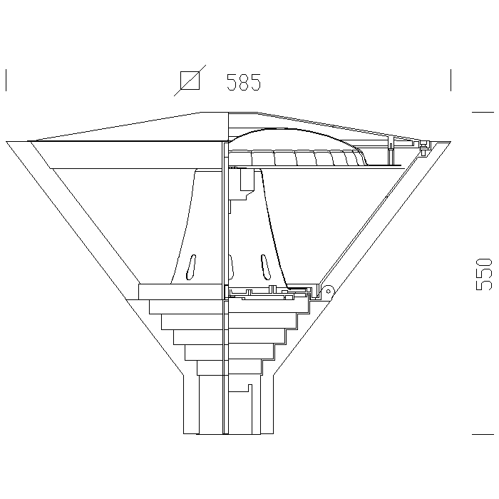 CORPO/COPERTURA: In alluminio pressofuso. DIFFUSORE: In policarbonato infrangibile ed autoestinguente V2, stabilizzato ai raggi UV, antingiallimento, liscio e trasparente. Internamente in vetro stampato e acidato, antiabbagliamento. VERNICIATURA:In diverse fasi. La prima ad immersione per cataforesi epossidica, nera, resistente alla corrosione e alle nebbie saline. La seconda con fondo per stabilizzazione ai raggi UV e per ultima finitura bugnata con vernice acrilica, grigio grafite o argento sabbiato.DOTAZIONE: interno della copertura in colore bianco o nero. EQUIPAGGIAMENTO: Pressacavo in nylon fibra di vetro diam. 1/2 pollice gas (cavo min.diam. 9 max diam. 12). Guarnizione in materiale ecologico. Piastra portacablaggio, con portalampada, asportabili in nylon f.v. Completo di sezionatore e di presa-spina. MONTAGGIO: Su palo diam. 76/60 mm o su braccio. NORMATIVA: Prodotti in conformità alle vigenti norme EN60598-1 CEI 34-21, sono protetti con il grado IP65IK08 secondo le EN 60529 Vista power led èequipaggiato con 49 led 1w cad. CRI 80 4000lm - 4000K - 37W tot. - 1050mA. Il rendimento totale dell'apparecchio è prossimo al 100% progettato per garantire la vita di 50000 ore del modulo led. NORMATIVA: Prodotti in conformità alle norme EN60598 - CEI 34 - 21. Hanno grado di protezione secondo le norme EN60529.