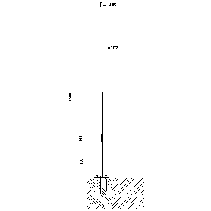 Palo in acciaio ø 102, colore argento. Con finestra d'ispezione in alluminio pressofuso (191x55mm), completo di 2 portafusibile di protezione, 2 fusibili da 16A , morsettiera asportabile a 4 poli. Predisposto con foro per ingresso cavo di alimentazione. Riduzione Ø60 mm. Per la versione con base è necessario acquistare 4 tirafondi da interrare, bulloneria e tappi. Si consiglia l'utilizzo con gli accessori 465/467 e con gli articoli Agadir, Monza e Metropolis.