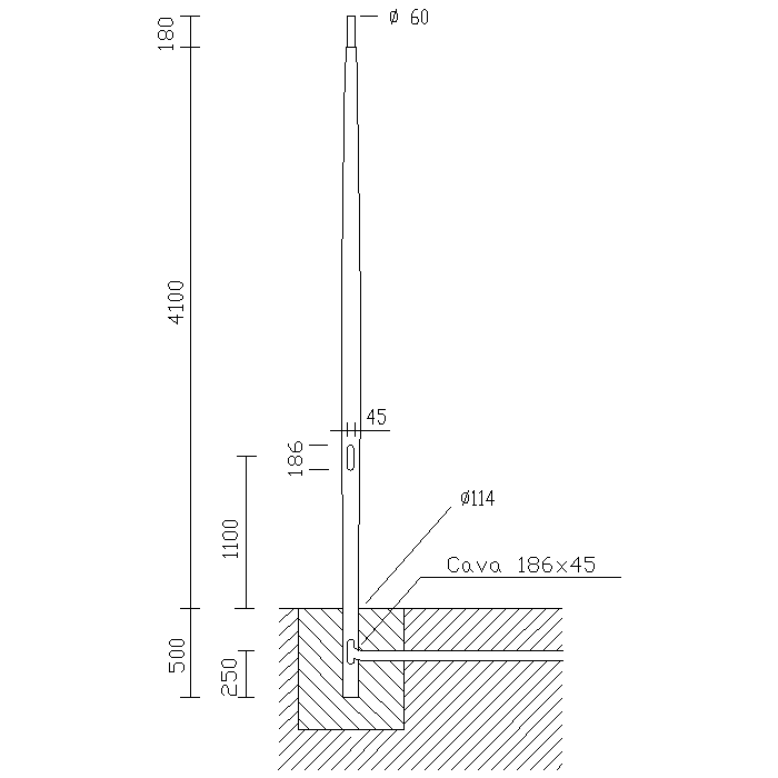 Pali in acciaio di sezione semicilindrica. Con finestre d’ispezione, completa di 2 portafusibili di protezione, 2 fusibili da 16A, morsettiera asportabile. Per la versione con base è necessario acquistare 4 tirafondi da interrare completi di bulloneria. Il suo design risulta adatto all’installazione in arredo urbano. Predisposto con foro per ingresso cavo di alimentazione, con attacco testa palo ø60. N.B.: La possibilità di accoppiare una composizione al palo è subordinata alla verifica della resistenza alla spinta del vento, nelle zone del territorio previste dalla norma D.M.14/01/2008. Secondo le ipotesi di carico previste dalle norme EN 40-3-1.