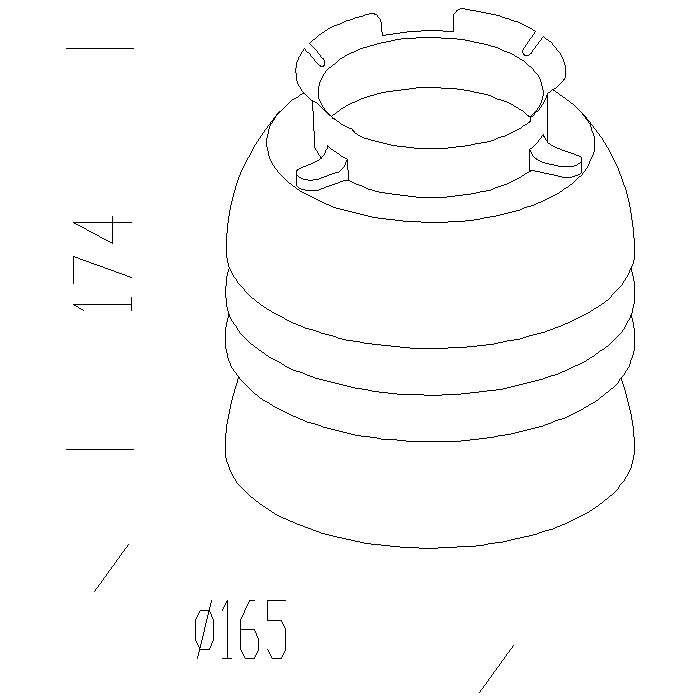 In alluminio. Per direzionare il fascio luminoso verso il basso, quando la base acc. 1313 (max 125) è montata su un braccio in giù.