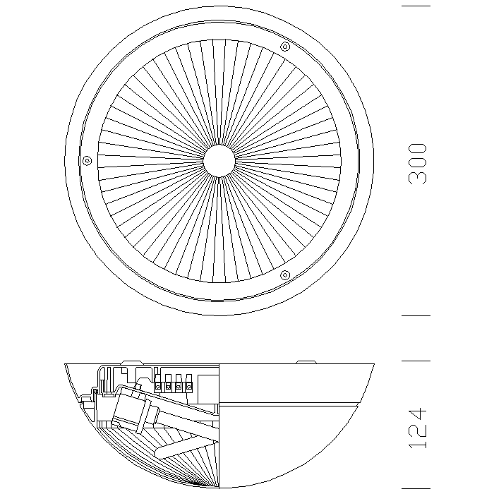 Corpo: In policarbonato, grigio RAL 7035, infrangibile ed autoestinguente V2, stabilizzato ai raggi UV. Riflettore: In alluminio lucido o policarbonato bianco (FLC). Diffusore: In policarbonato antiabbagliamento, infrangibile ed autoestinguente V2, stabilizzato ai raggi UV, liscio esternamente antipolvere