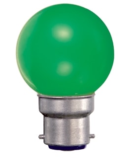 Forme classiche per una sostituzione immediata delle lampade ad incandescenza negli impieghi decorativi e nei festoni: disponibile nelle versione B22. Alimentazione a tensione di rete, senza trasformatore. Globo in materiale antiurto estremamente resistente: queste lampade possono "rimbalzare"se cadono in terra. Bassissimo consumo energetico. Tonalità della luce: Verde.