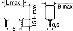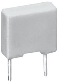 CONDENSATORI IN POLIESTERE METALLIZZATO P. 5. Esecuzione a scatolino non induttivo. CORPO:resina epossidica. DIELETT.:film poliestere. TERMINALI:rame stagnato. CATEG. CLIM.:DIN 40040. TEMP. LAV.:-55°C÷+105°C. TOLLERANZA:±10%. PASSO:5 mm. Cap. Elettr. 1 UF.