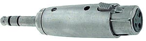 ADATTATORE DA SPINA 6,3 STEREO A PRESA MICROFONO 3 POLI. CORPO:ottone nichelato. PER PRESE Ø 6,3 PANN.:4/3148. PER PRESE Ø 6,3 VOL.:4/3242. SPINE PANN.:4/4829. SPINE VOL.:4/4821.