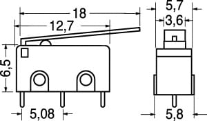 MICRODEVIATORE CON LEVA LUNGA. PORTATA:1 A - 125 V. FORZA AZION.:25 gr. CORPO:pvc. CONTATTI:ottone argent. TERMINALI:per C.S.