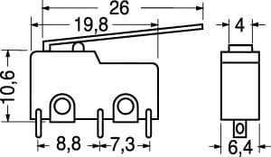DEVIATORE MINIATURA. PORTATA:3 A - 125 V. FORZA AZION.:28 gr. CORPO:pvc. CONTATTI:ottone argent. TERMINALI:a saldare.