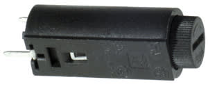 PORTAFUSIBILE VERTICALE CON TAPPO A BAIONETTA PER C.S. PER FUSIBILI 5x20. Con scritta "fuse"sul cappuccio. CORPO:termopl. autoest. CONTAT.:lega rame stagn. PORTATA:6,3 A - 250 V.