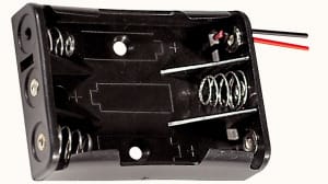 PORTAPILE PER 3 PILE MINISTILO (AAA-UM4). CORPO:polipropilene. CONNESSIONE:fili liberi. LUNG. FILI:150 mm. PER BATTER.NI-MH:30/284. PILE ALCALINE:30/24000 - 30/25000.